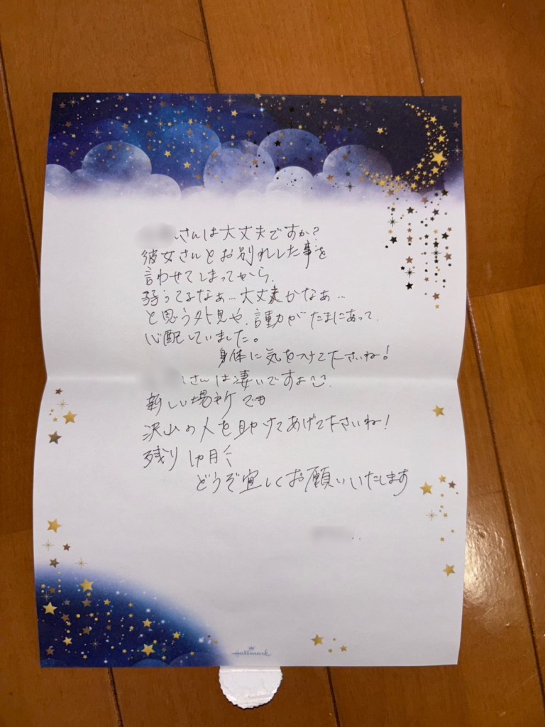たったの3ヶ月で素敵なお手紙をいただけるような関係性を作れるようなトレーナーになることができてうれしく思います。